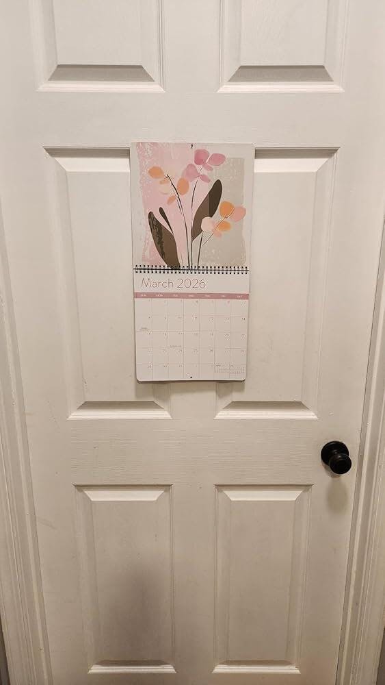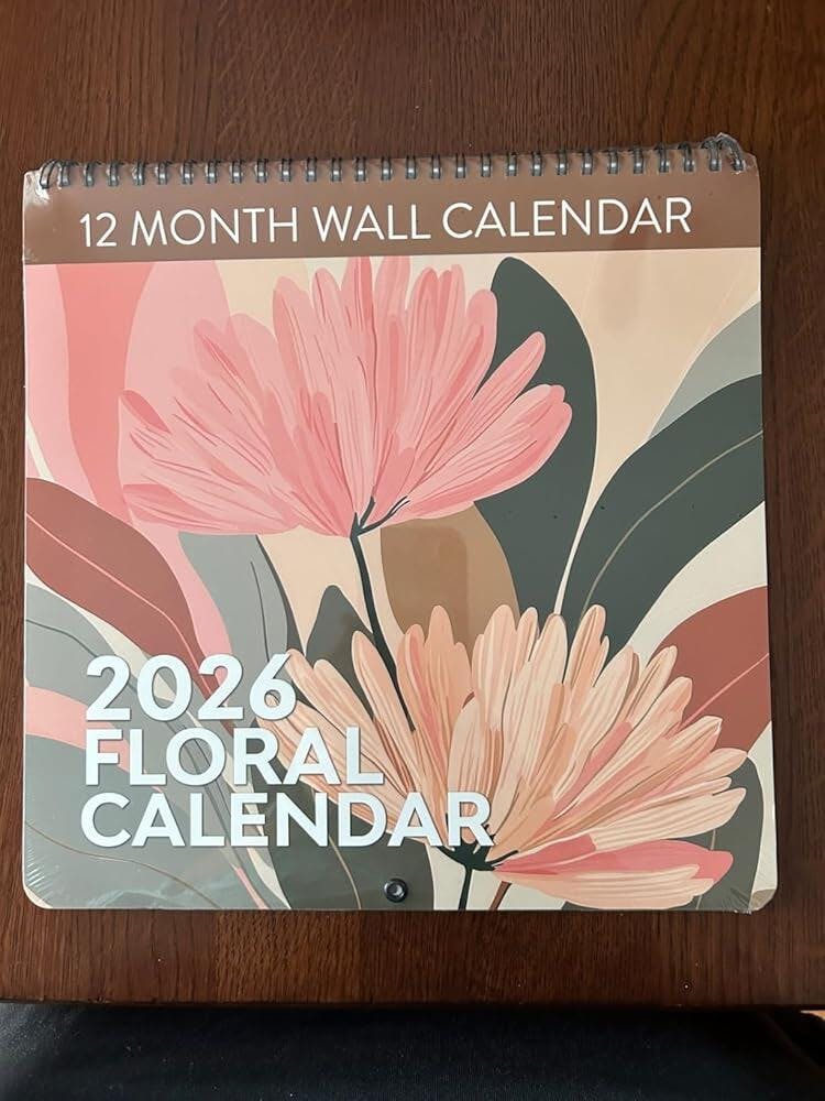 It's time to start looking for next year's calendar. This one looked really pretty, so I decided to try it out.I like that this calendar has a sturdy front and back, and the hole for hanging the calendar is reinforced with a metal rivet. I really like the simple flower designs, and the font is crisp and easy to read. I also like that there's plenty of space for making notes in each date box. The calendar is 9.88" x 19.76" when opened, as described in the listing.I don't have any drawbacks to mention. Overall, I really like this calendar and I'd recommend it.