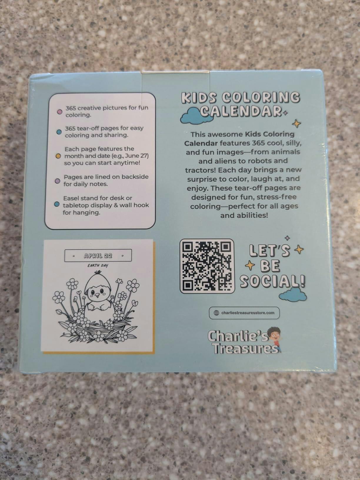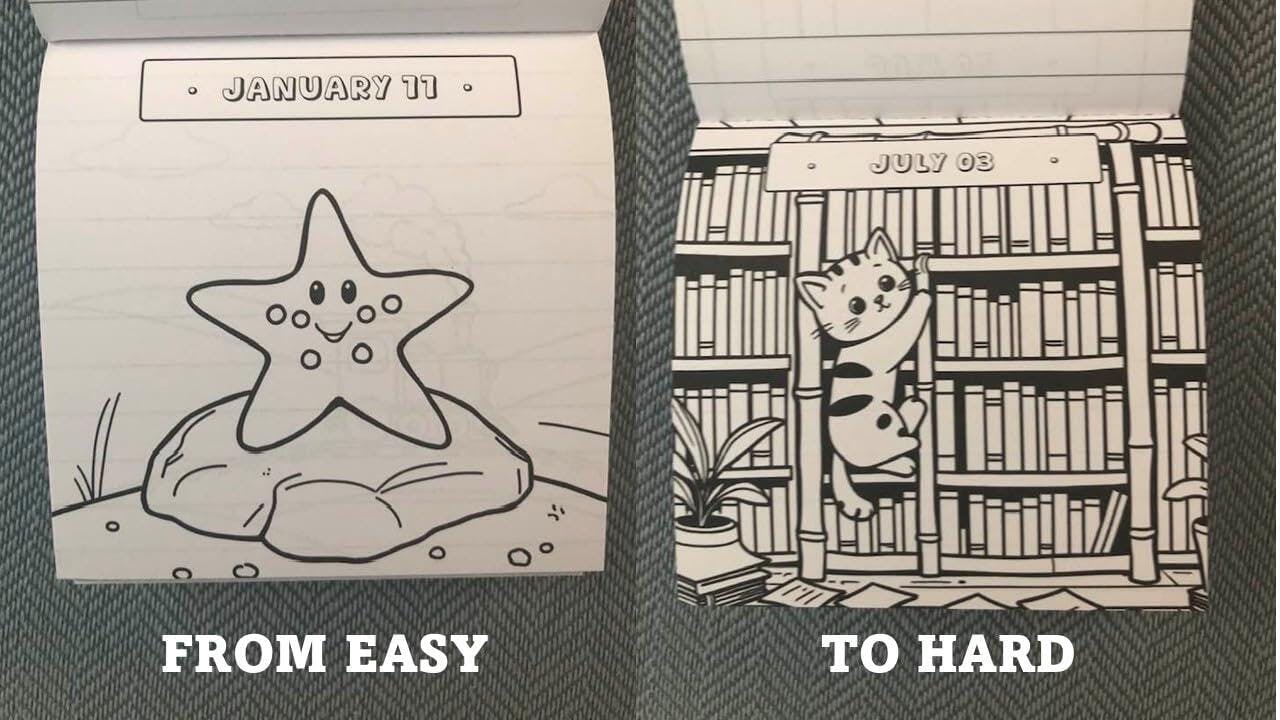 Hello everybody, I think that this "2026 Kids Coloring Daily Calendar" is a great idea especially for those people who just have to color whenever they see crayons or coloring pages. I am one of those people along with my 10-year-old grandson. Must be in the genes!Anyway, I am going to give this calendar to him for Christmas. I have inspected the calendar and right away I was wanting some crayons to color in it. I am thoroughly impressed with the variety of pictures and levels of easy to hard and each page has the day and month and, on the back, a lined note page.Another impressive thing is the book has all of the holiday's listed some of them with coinciding images. They even have not your usual ones like Star Wars Day and Cinco de Mayo. It's so nice too that each page is completely different with no two alike and your able to choose what you want to color from what mood you're in, an event, a birthday or just a whim! I know sometimes I feel sad or gloomy and will pick a page that will cheer me up.Awesome little coloring calendar that the pages tear out for easier coloring, hangable or stand able and worth every penny!